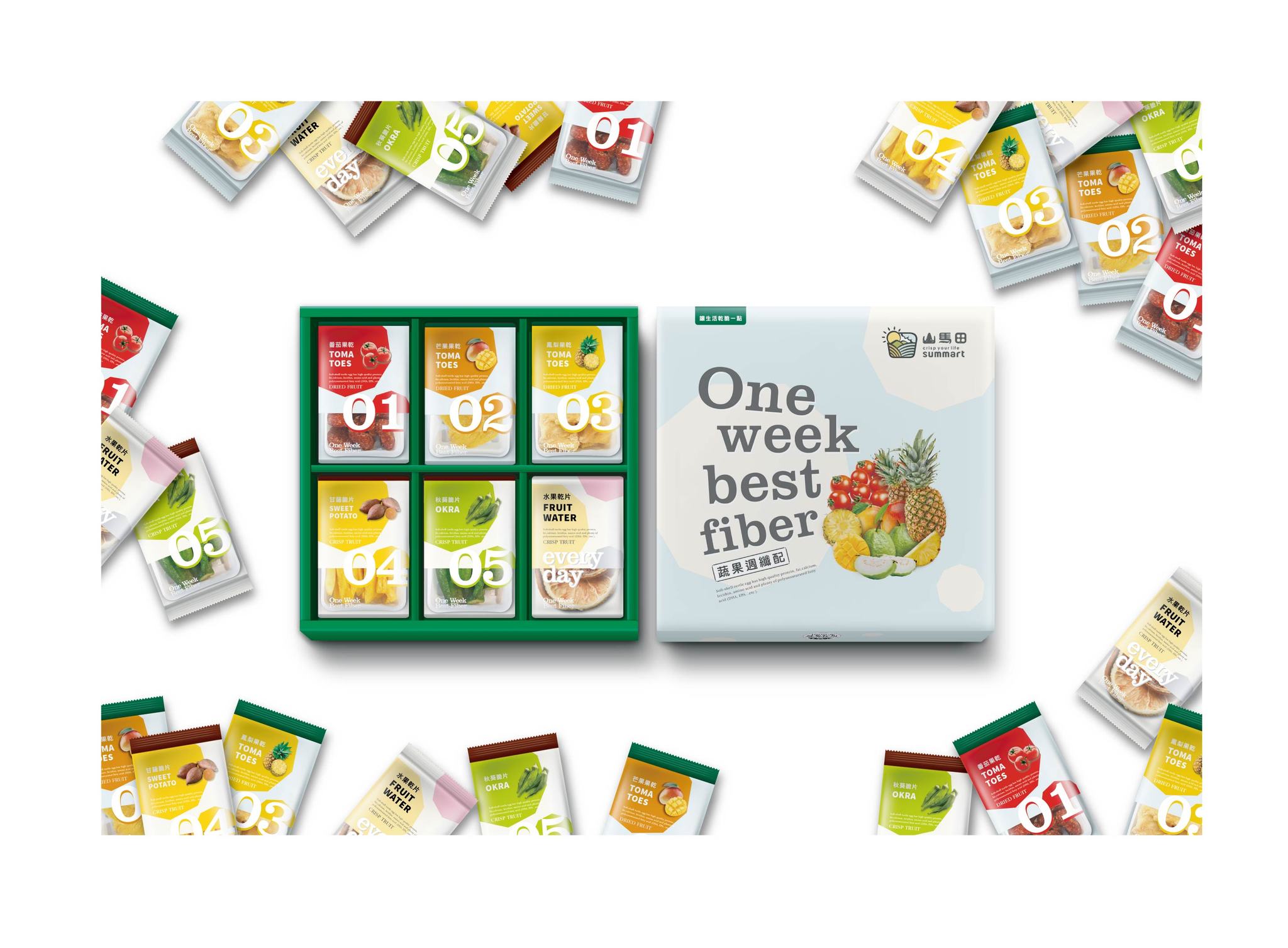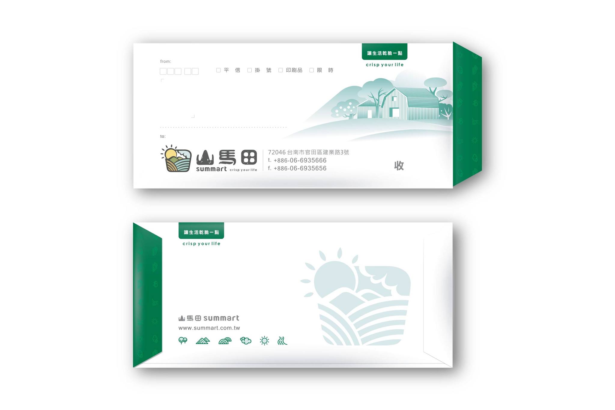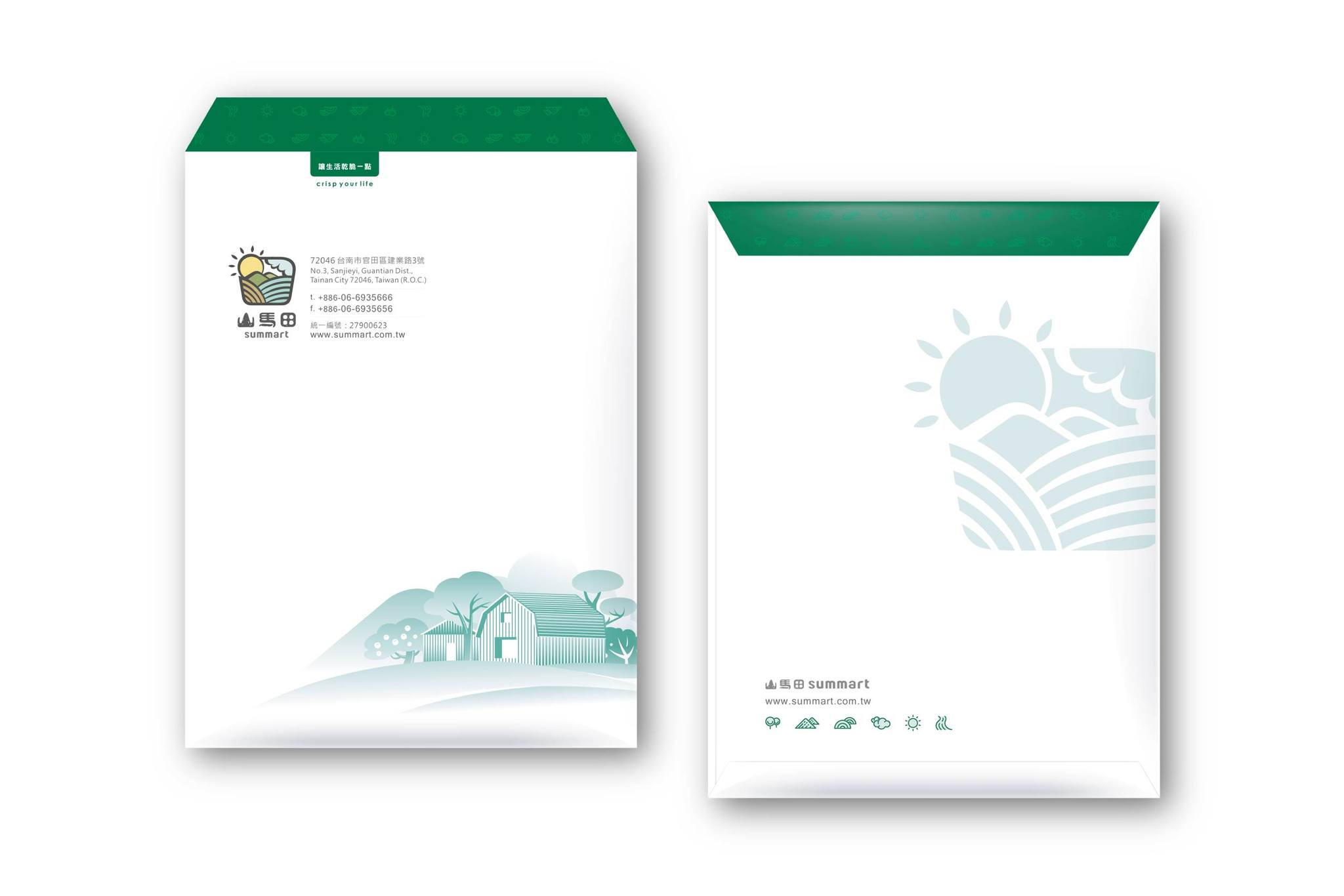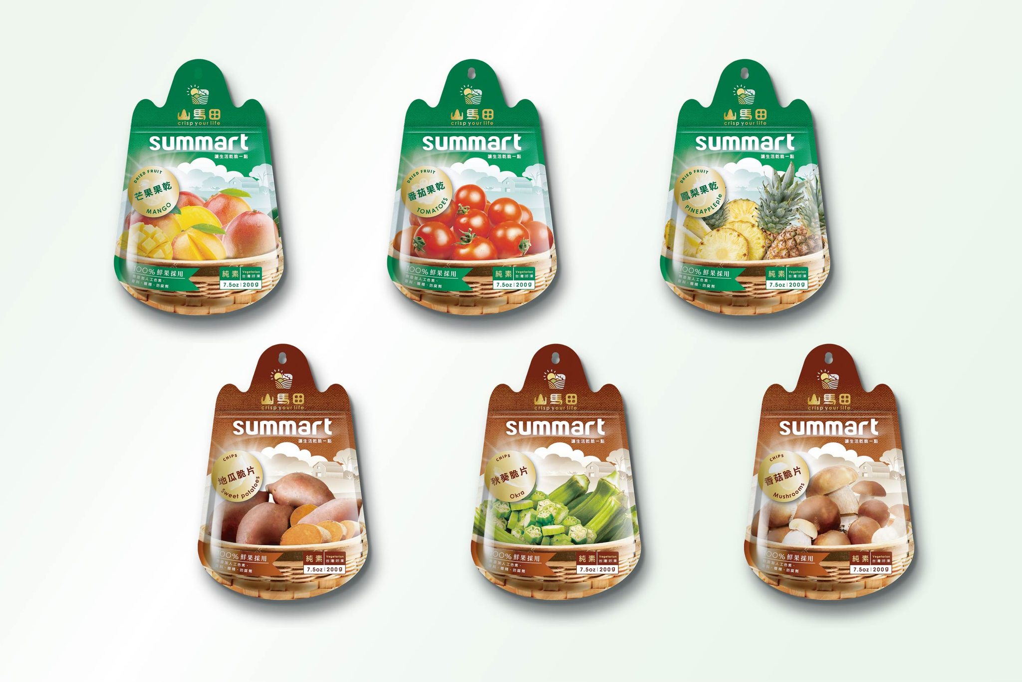 「山馬田」取其音同英文單詞Summer,摘取自其中的物產,轉化成像個超市mart的購物詮釋。LOGO標誌以山、日、田等自然生活意象構成,將土壤的層理、日照的溫度、耕者的節奏,濃縮在一個簡約而溫潤的符號之中。圖層整體彷彿能想像農場的四季如春、被折疊且細心收藏著窗外風景,傳遞出農作日常都在你我的生活裡。品牌標誌設計外形猶如果籃造型,猶如包裹著時節新鮮的美味,穩重且樸實的手寫標準字,更將台灣山明水秀的環境融入其中;低飽和度的大地色系,圓潤等粗的線條描繪,曲線和分層的起伏堆疊,營造出簡單、內斂、保有層次又具質樸的生活質感。