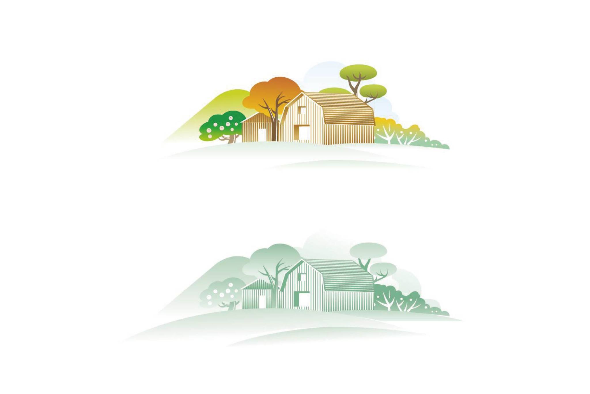 The logo is built from simple symbols—mountains, the sun, and farmland—capturing layers of soil, the warmth of sunlight, and the steady rhythm of cultivation. These elements are distilled into a soft, minimal mark that feels calm and grounded. The layered form suggests a folded landscape, like a carefully kept window view, reminding us that farming and food are quietly present in our everyday lives.